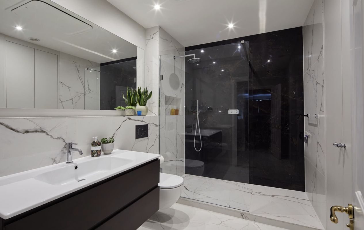 The staircase or elevator leads you to the first floor where we find the big master bedroom with dressing, ensuite bathroom, and a private terrace. On the other side of this floor, you have the elevator, a storage room, and the laundry chute so you do not have to drag the washing downstairs. Furthermore, you have here 4 other bedrooms each with ensuite bathrooms. 3 of the bathrooms have access to a small terrace.