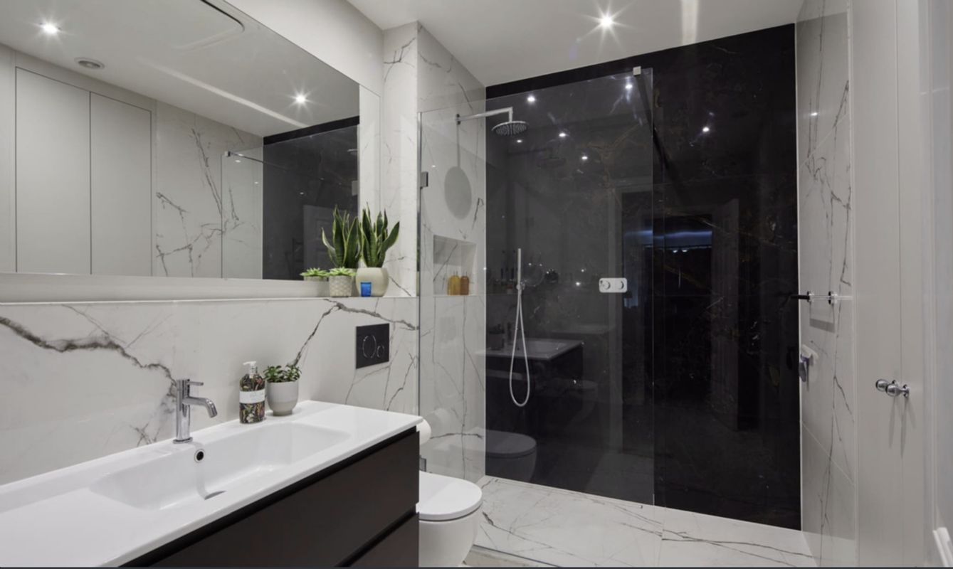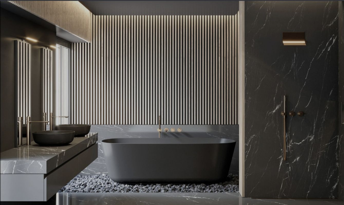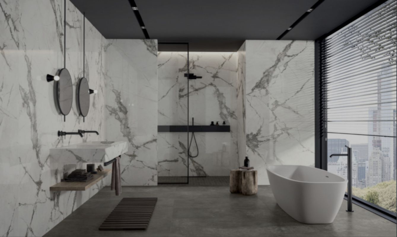 - Bathroom walls with COVERLAM or LIVING CERAMICS plates 2700X1200 (Color to choose)