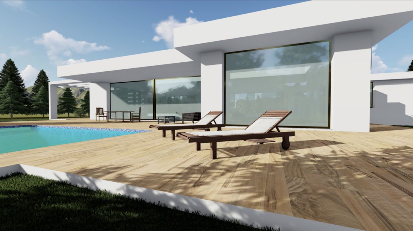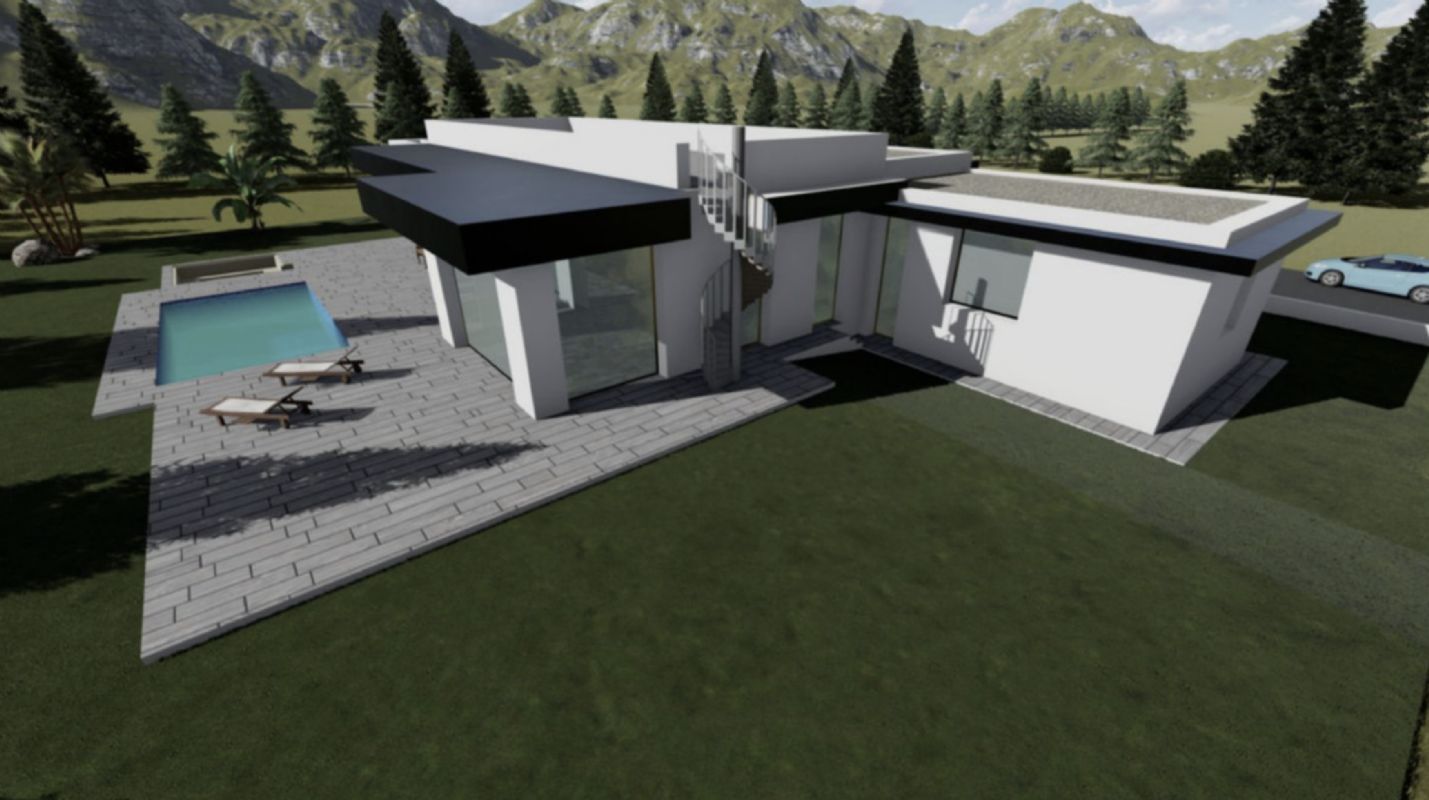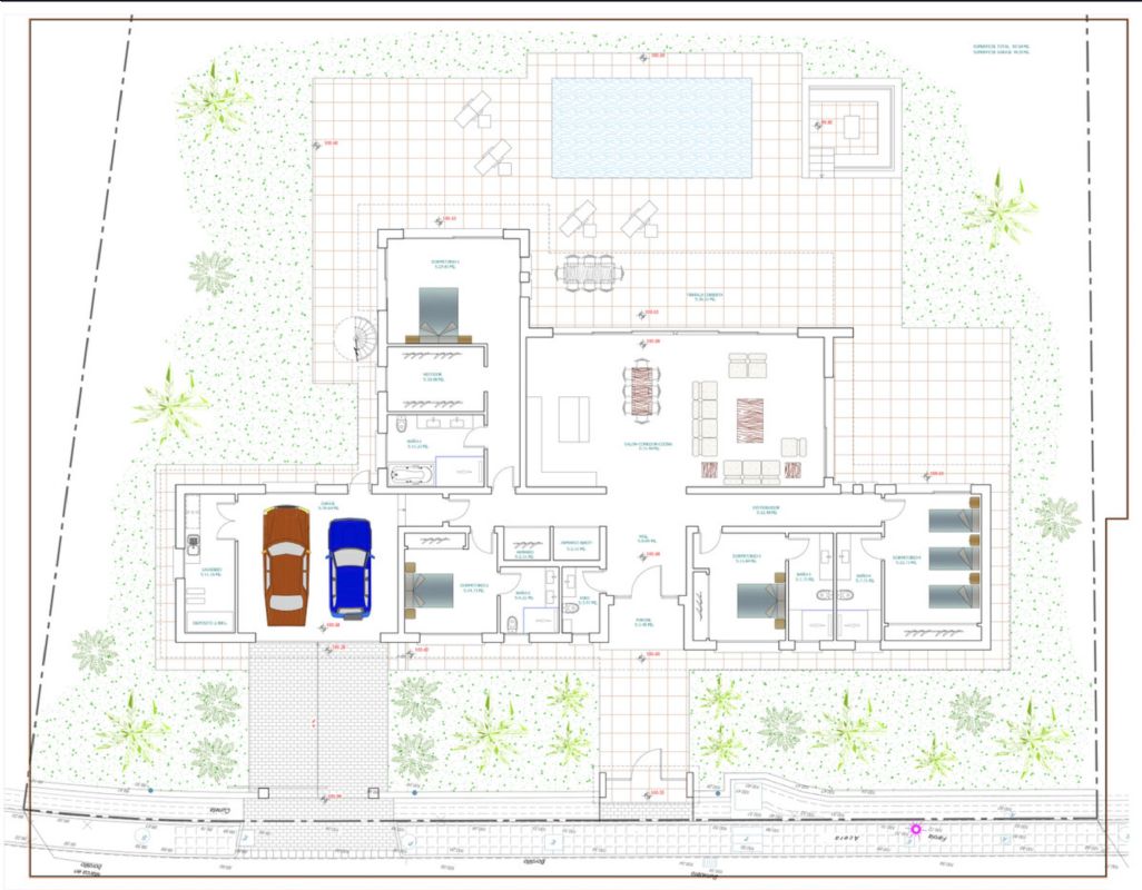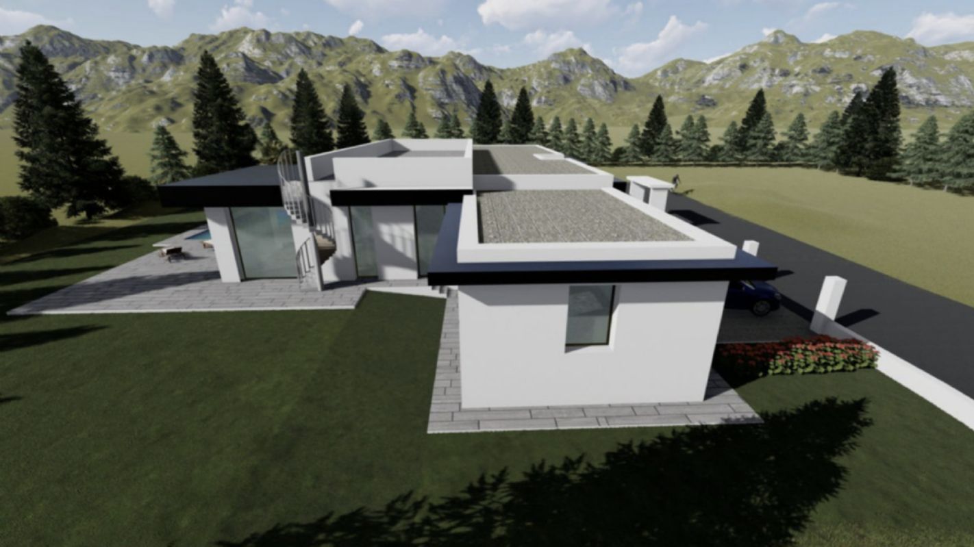 This construction consists out of 4 bedrooms with 4 ensuite bathroom, guest toilet, master dressing, distributors, big living/dining/kitchen area, garage and storage room, heated pool with chill-out, covered terraces, terraces, and a solarium with pergola terrace and BBQ area.