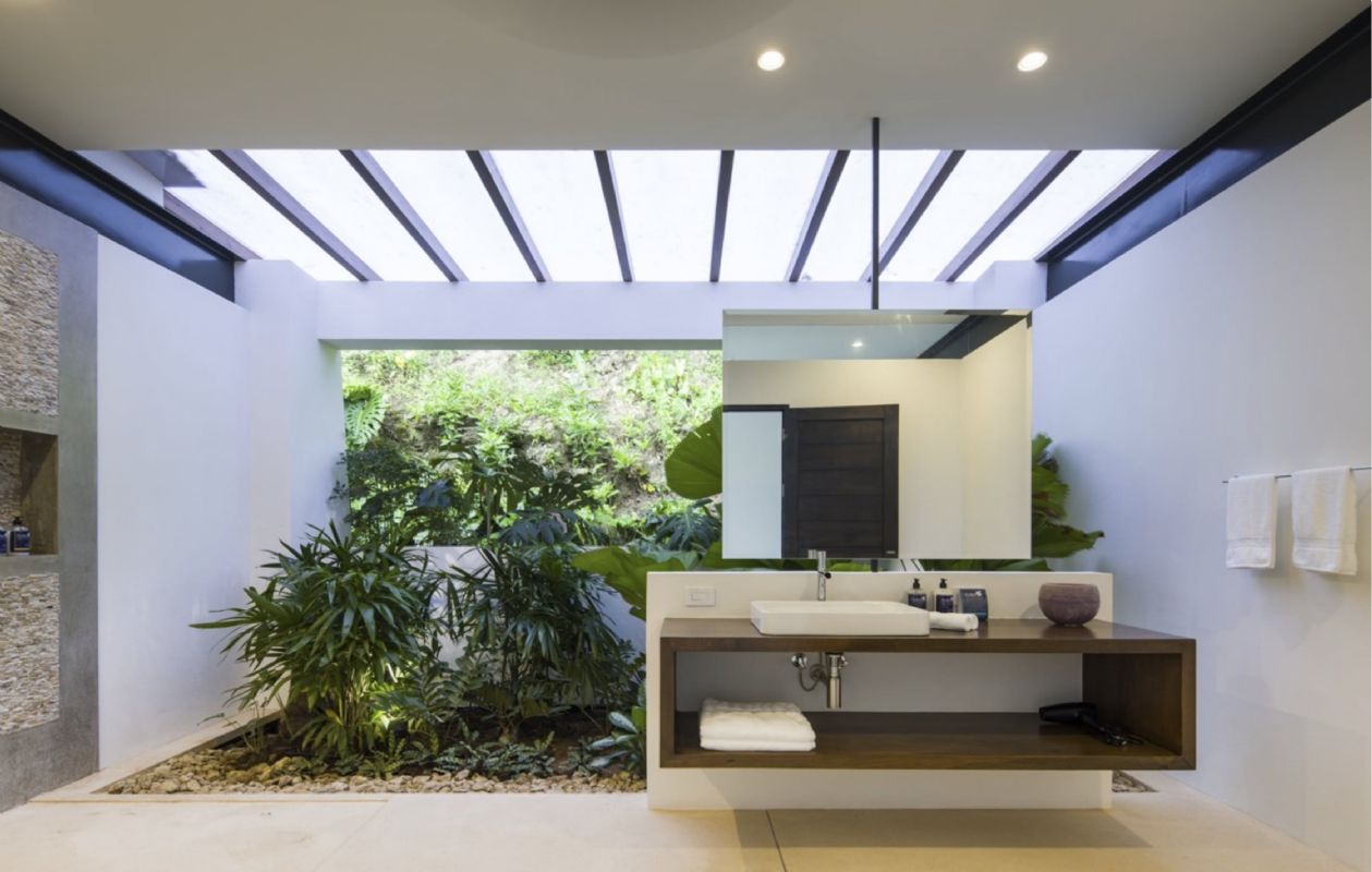 Todos los dormitorios y cuartos de baño tienen grandes ventanas para que la villa contemporánea sea luminosa.