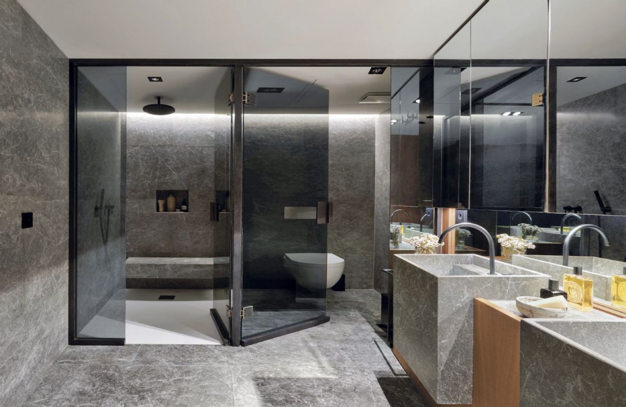 - Todo el suelo interior y exterior y las paredes del baño de Saloni
