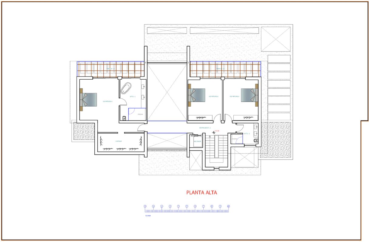 Primera planta; ascensor, dormitorio principal con baño en suite, vestidor y terraza privada, otros 2 dormitorios que comparten un baño y cada uno con una terraza.