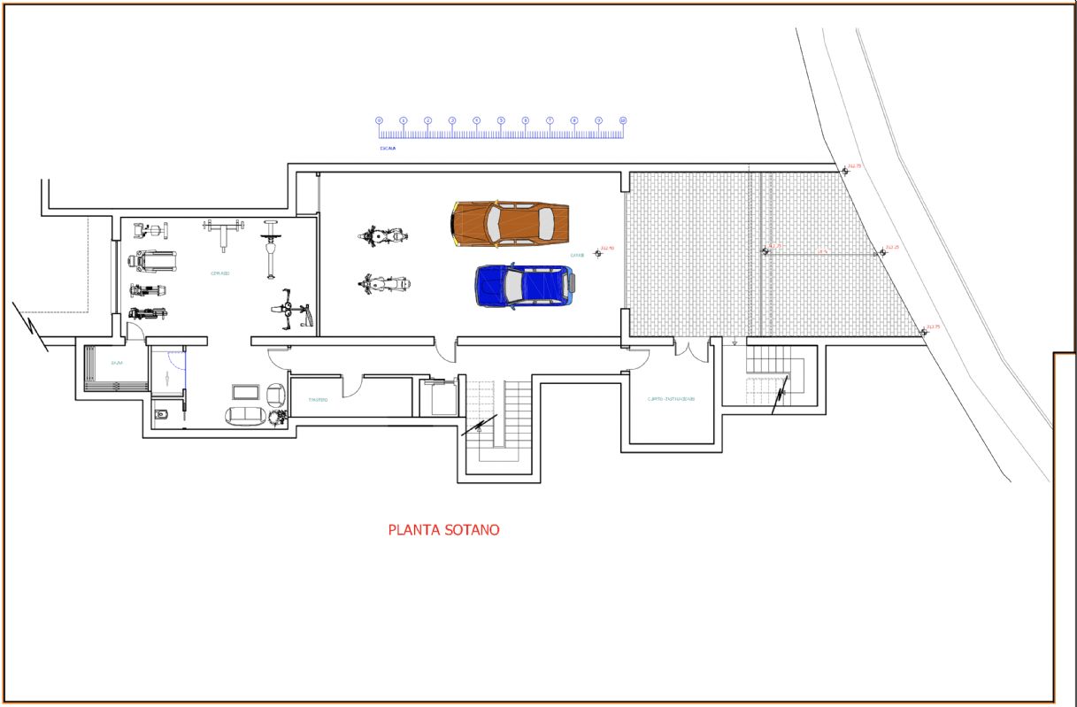 Sotano; gran garaje, ascensor, sala de maquinas, trastero, sauna, baño, gimnasio, el sotano tiene ventanas por lo que existe la posibilidad de adaptar la planta y añadir otro dormitorio con baño ensuite sin aumentar el coste.