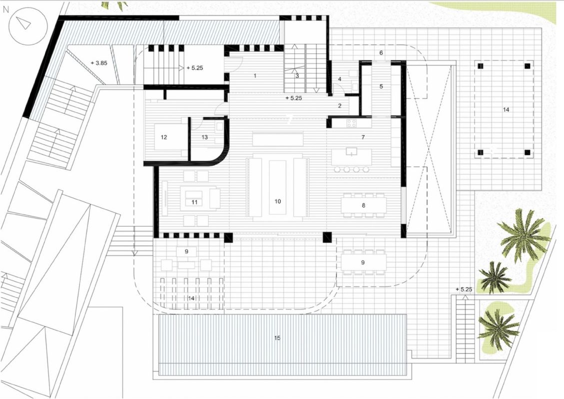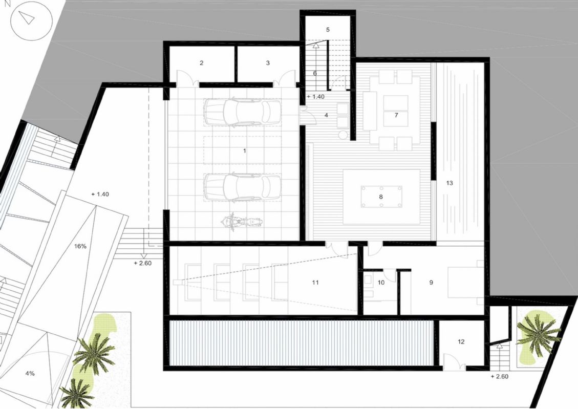 Kelder; garage voor 2 auto's, installatieruimte, berging, waterval machinekamer, hal met trap, woonkamer, biljartkamer, zelfstandig appartement, slaapkamer met en-suite badkamer, bioscoopkamer, biljartkamer, en een Zen patio.