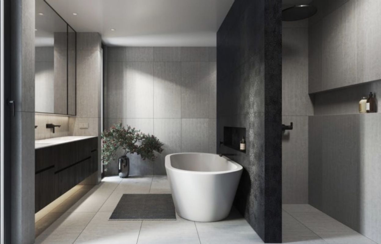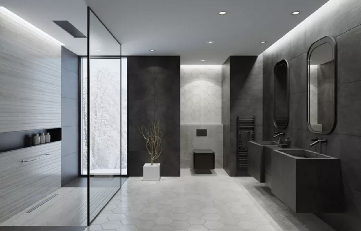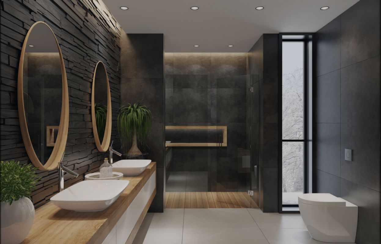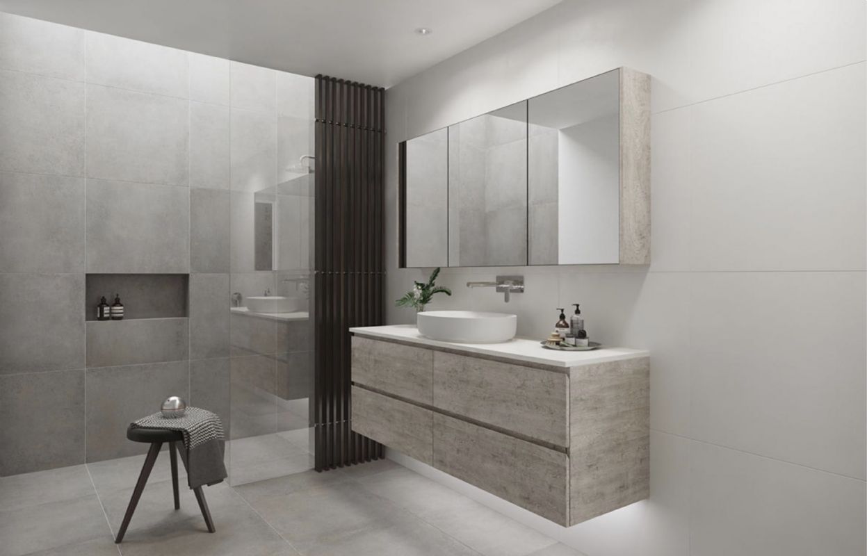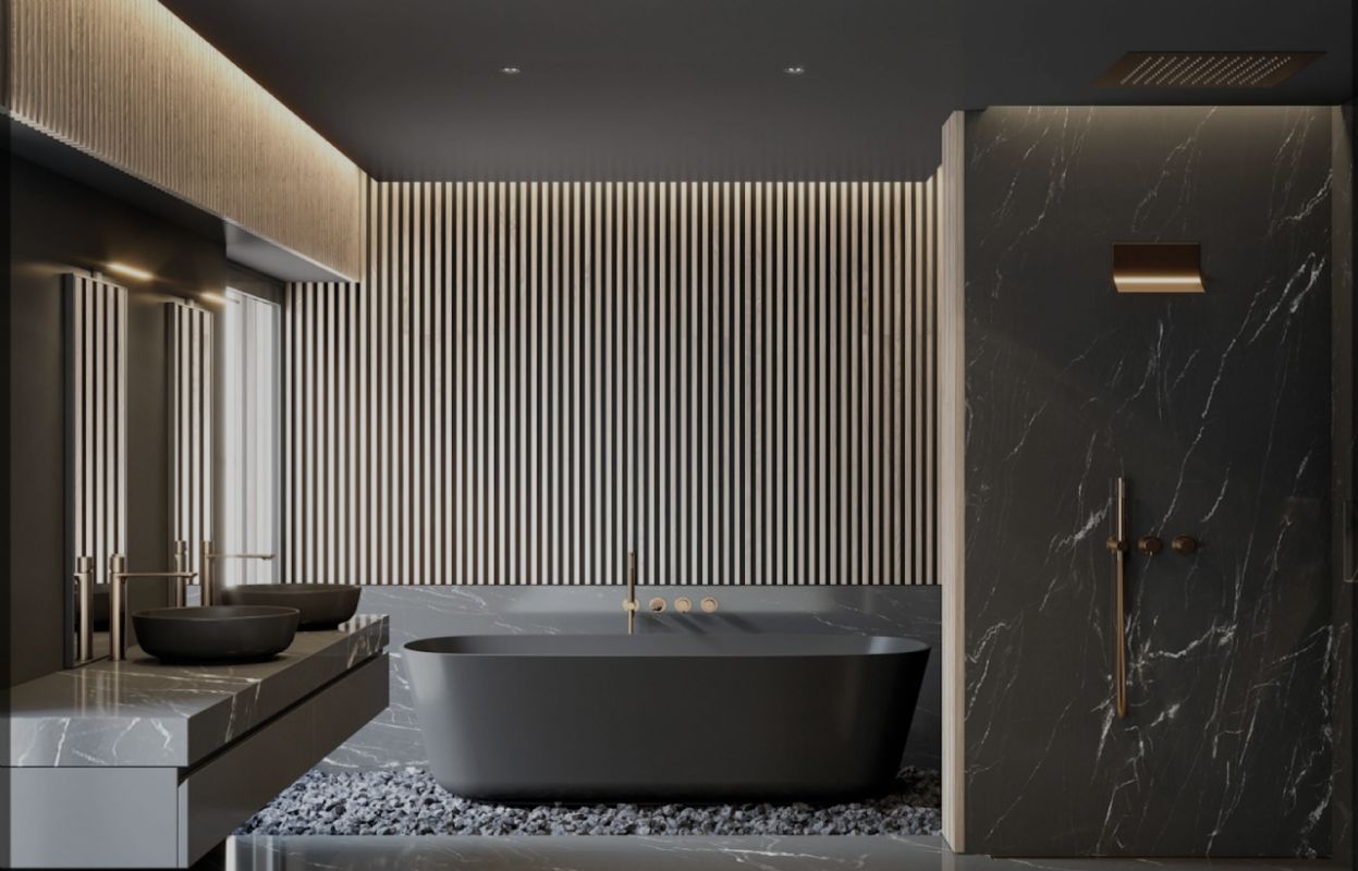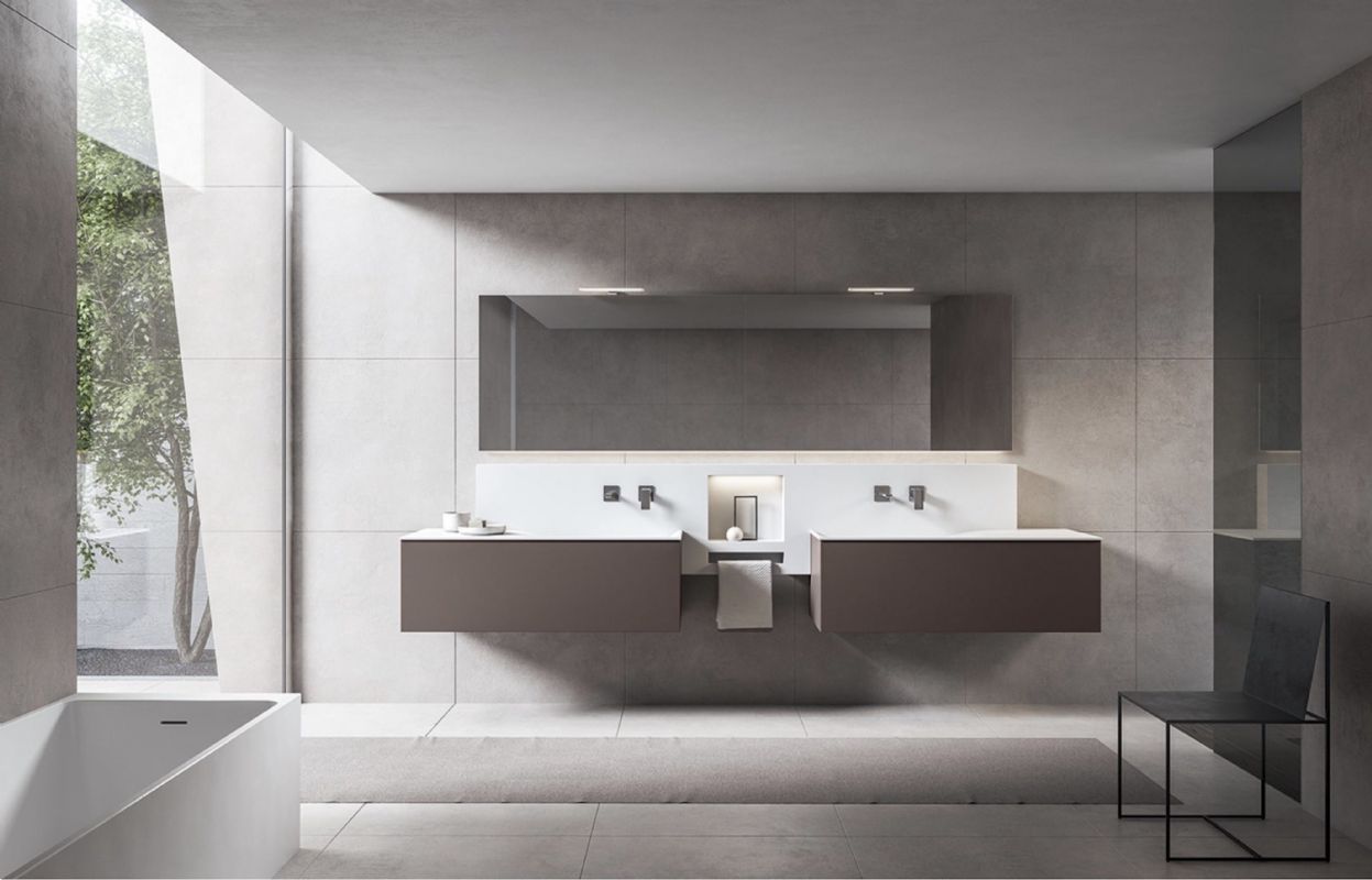 - Badkamerwanden met COVERLAM platen van GRESPANIA of LIVING CERAMICS (Kleur te kiezen)