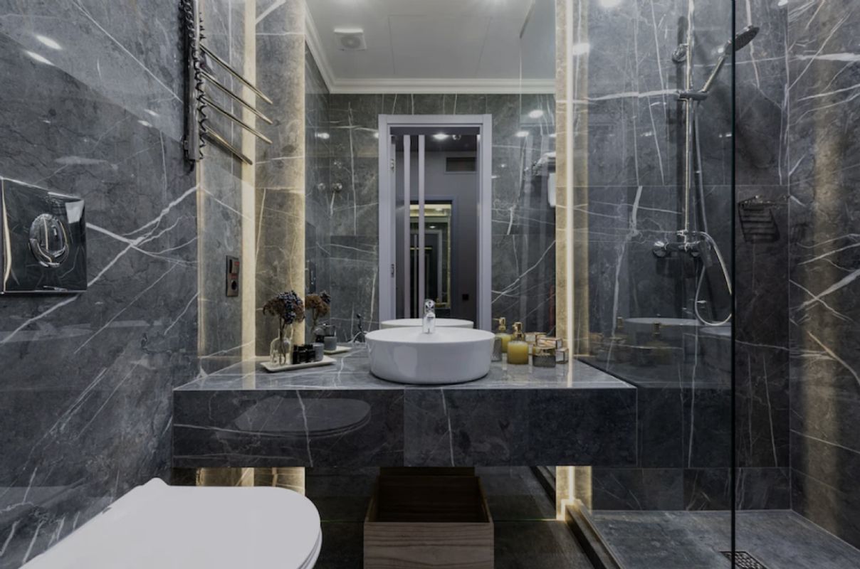 - Badkamer wanden bedekt met COVERLAM muurplaten