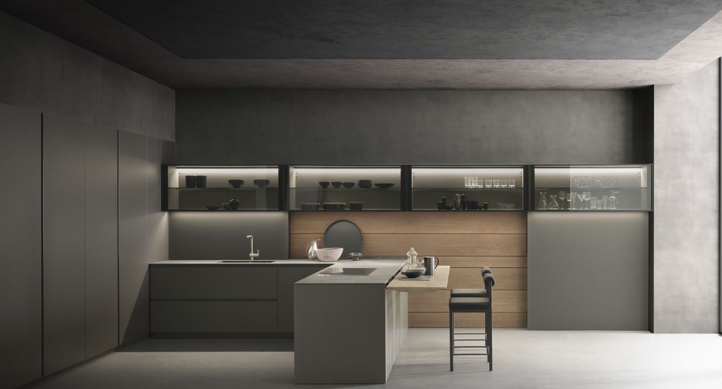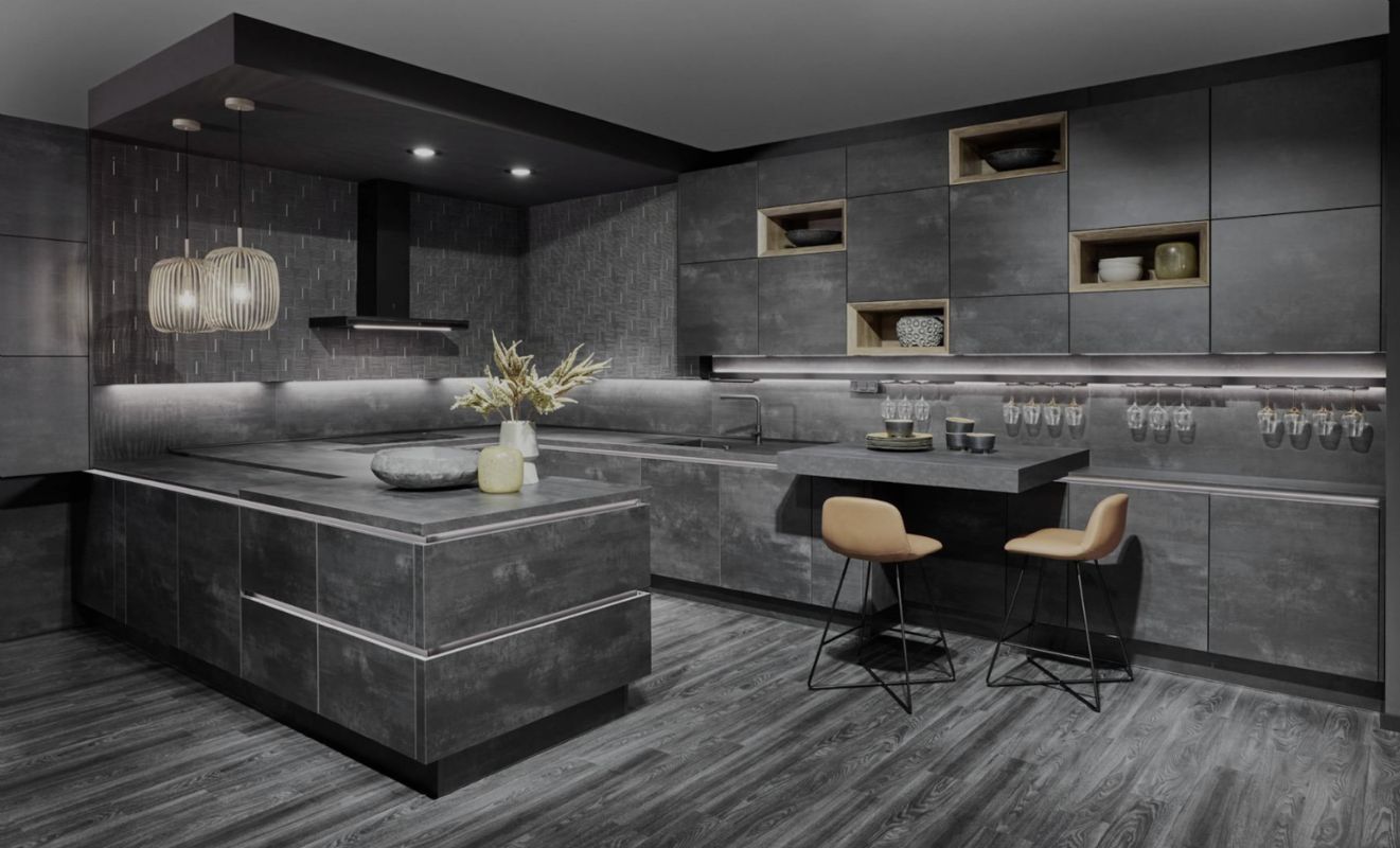 - Volledig ingerichte keuken met deuren in aluminium frame en bedekt met COVERLAM