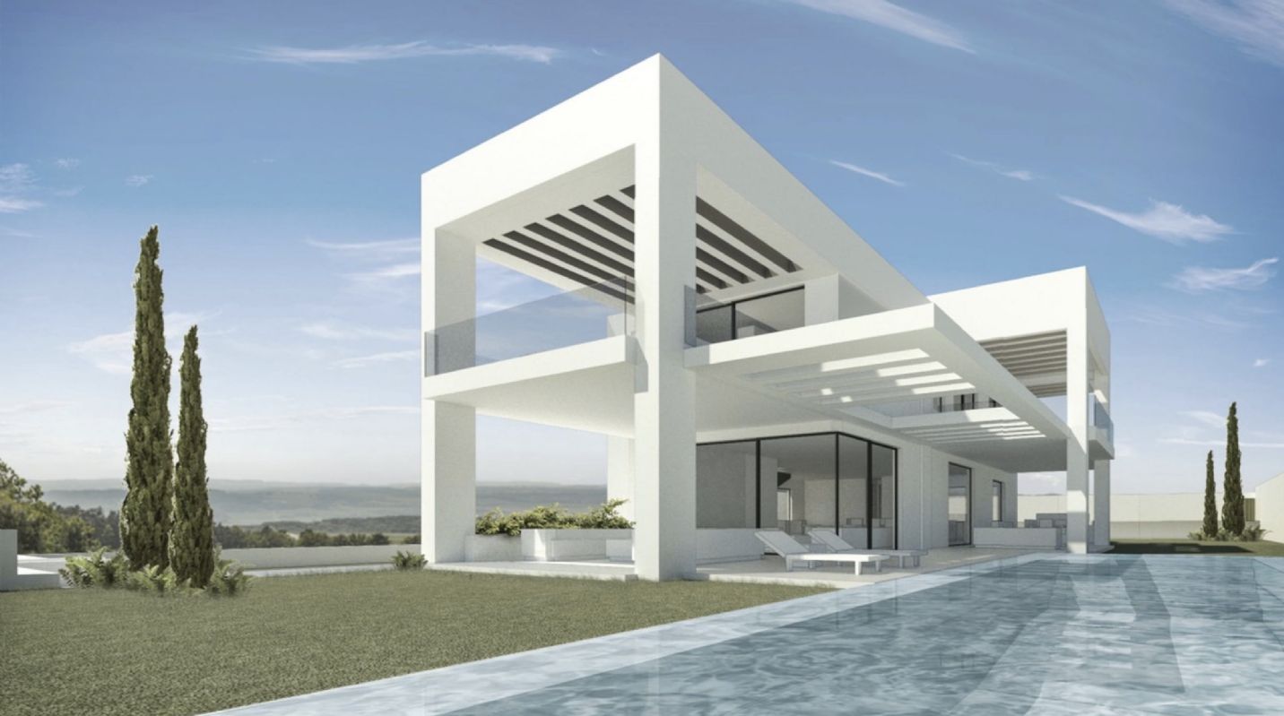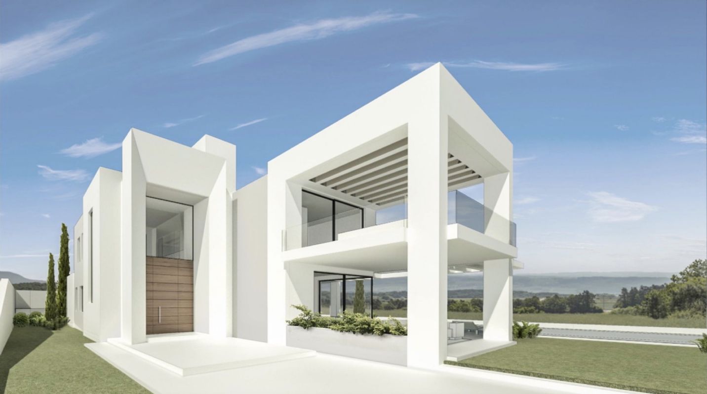 OFF-PLAN hedendaagse, ecologische villa in het prestigieuze resort Marbella Club Golf, Benahavis wit gedeeltelijk zeezicht