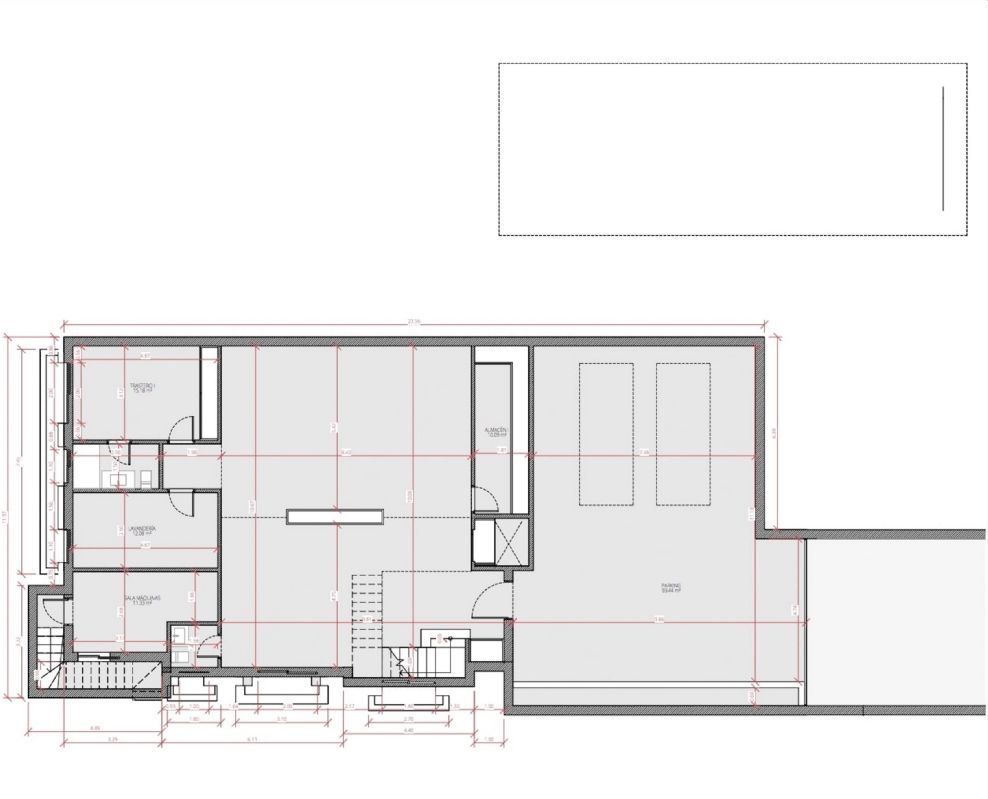 In de kelder is een garage voor minimaal 3 auto's, bergruimtes, een technische ruimte en een bijkeuken.