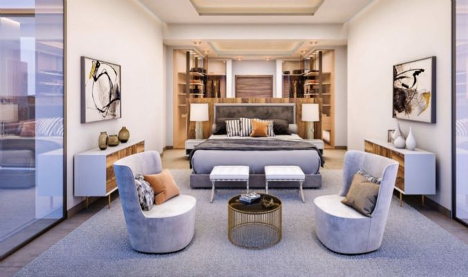Deze luxe eigentijdse villa heeft 4 slaapkamers en 4 badkamers en een gastentoilet.