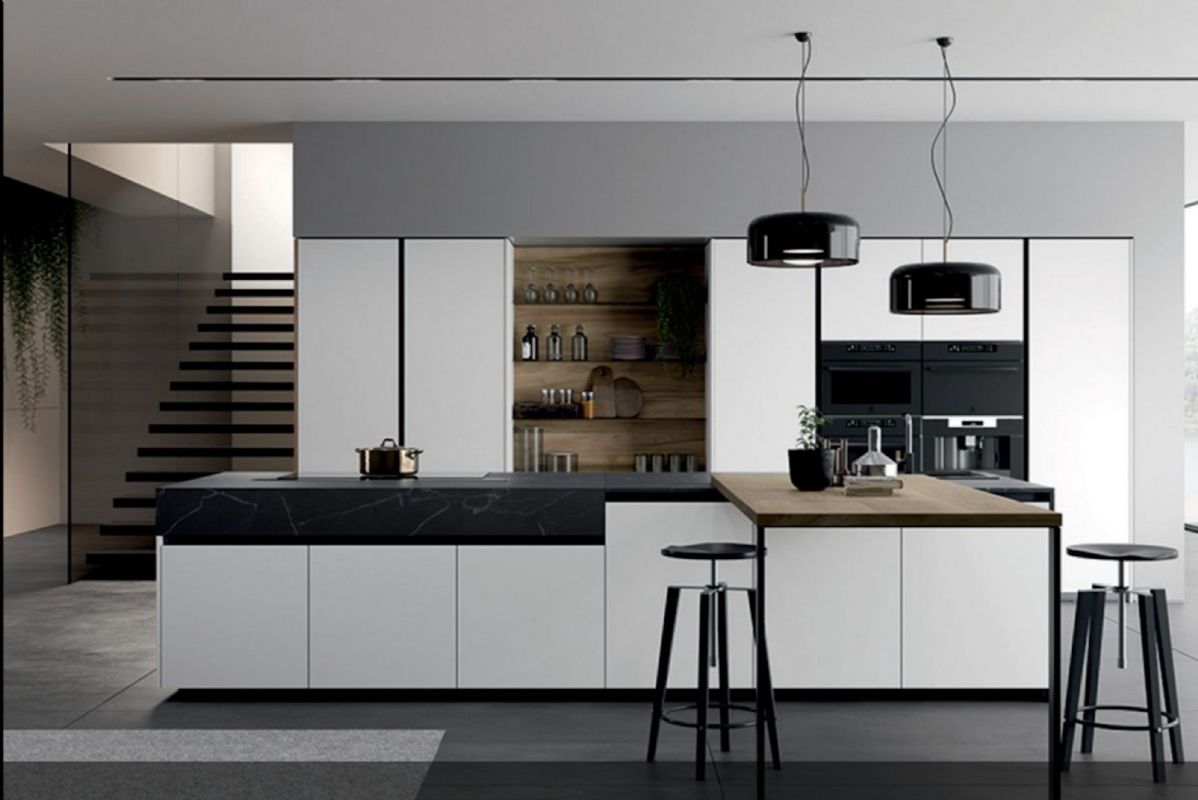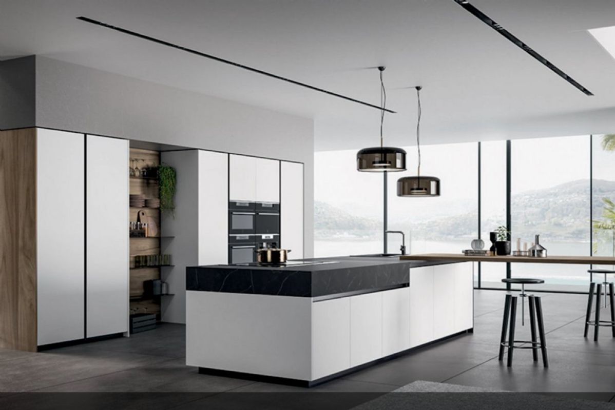 - Volledig ingerichte keuken met deuren in aluminium frame en bedekt met COVERLAM