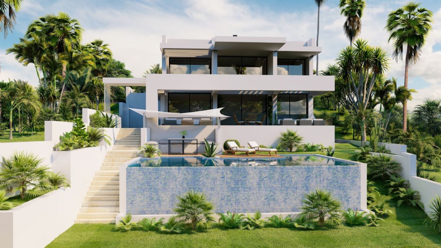 OFF-PLAN MODERNE ECOLOGISCHE VILLA IN TORREMUELLE - BENALMADENA MET UITZICHT OP ZEE EN OP 250 METER VAN HET STRAND.